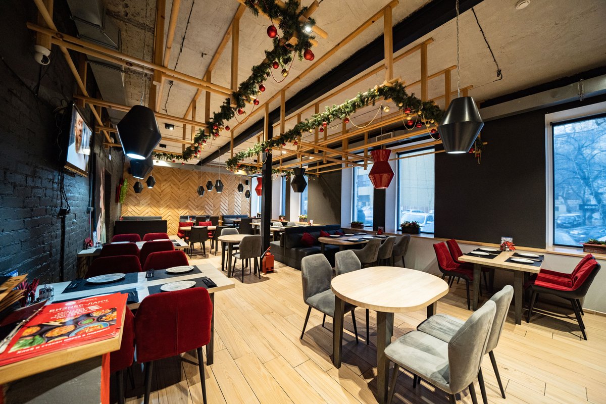 В этом заведении вкусная кухня. Особенно понравился салат с говядиной, огурцом и майонезом. Мы обычно берем еду на вынос, и заказы готовятся за 20–30 минут, затем упаковываются в пластиковые контейнеры. Официанты здесь работают хорошо.