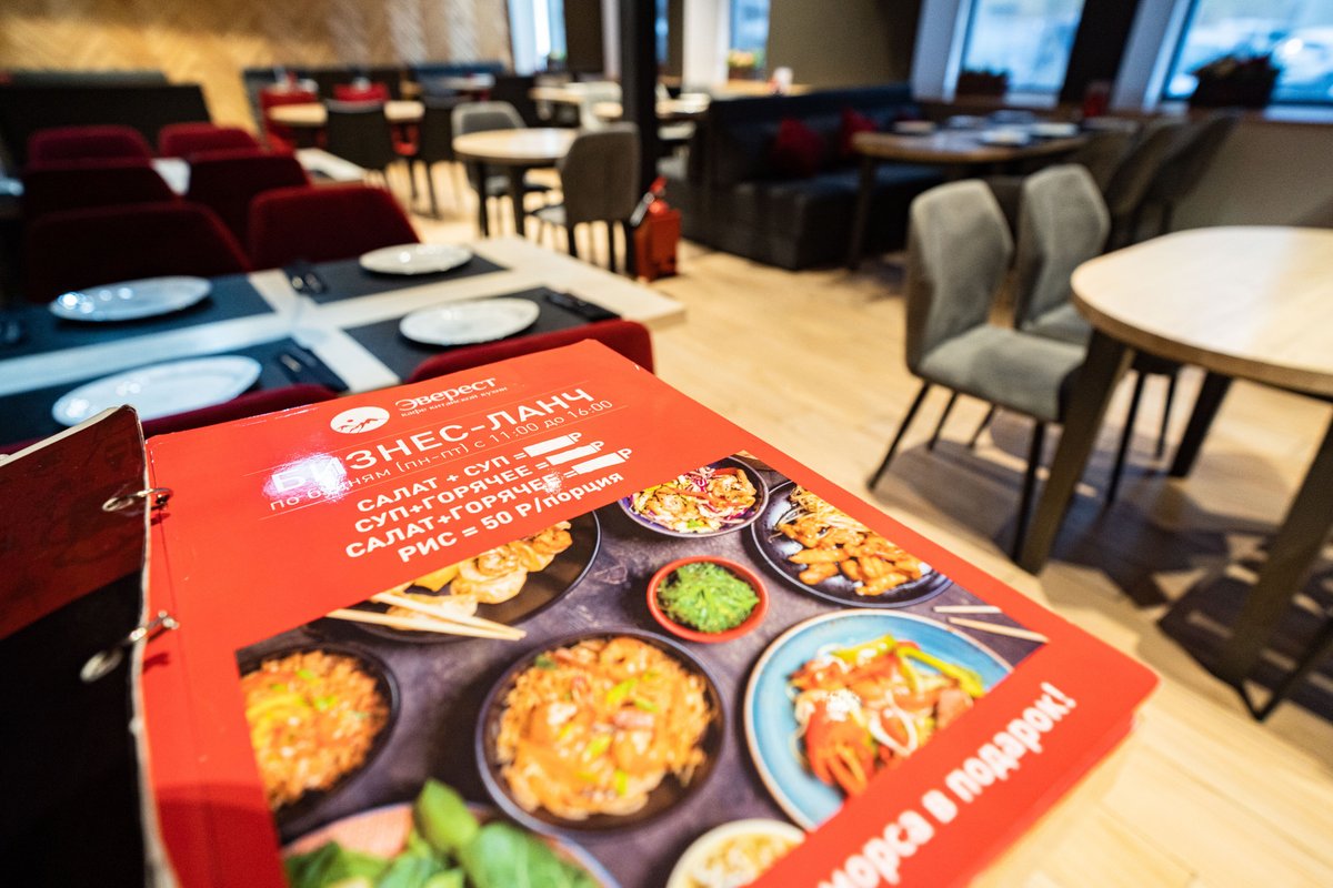 Кухня понравилась, всё хорошо, кафе чистенькое. Интерьер уже года три не менялся, диванчики мне в нём очень нравятся, находиться уютно. Из еды мы всегда берём мясо в кисло-сладком соусе, оно в кафе любое вкусное, например, салат с креветками, морковкой и брокколи. Ещё мясо на рёбрышке тоже неплохое. Официанты всегда очень хорошие и внимательные, в этом плане всё нормально.